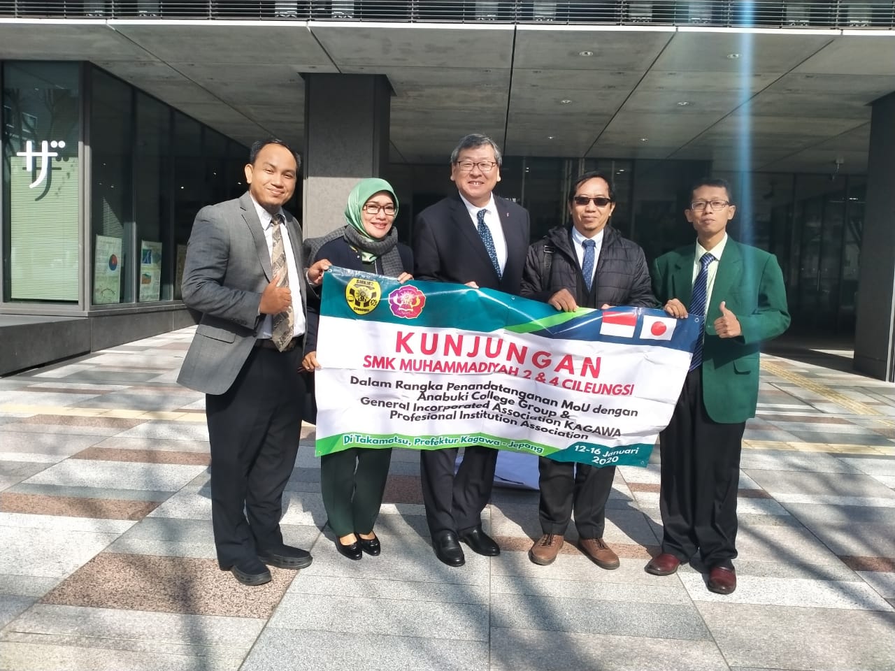 Dihari pertama Kedatangan mereka langsung di terima oleh Walikota Takamatsu , dalam sambutannya walikota menyampaikan harapannya agar kedepan semakin banyak lagi anak-anak muda Indonesia yang mau belajar di Jepang. Setelah penyambutan selesai dilanjutkan MOU partnership dengan asosiasi sekolah vokasi pefektur Kagawa dan MOU partnership dengan Anabuki Collage, tujuan MOU kali merupakan sebuah ikhtiar SMK Muhammadiyah Cileungsi untuk bisa mempasilitasi lulusan SMK Muhammadiyah Cileungsi untuk bisa magang atau kuliah di sekolah vokasi di Jepang dengan mudah.